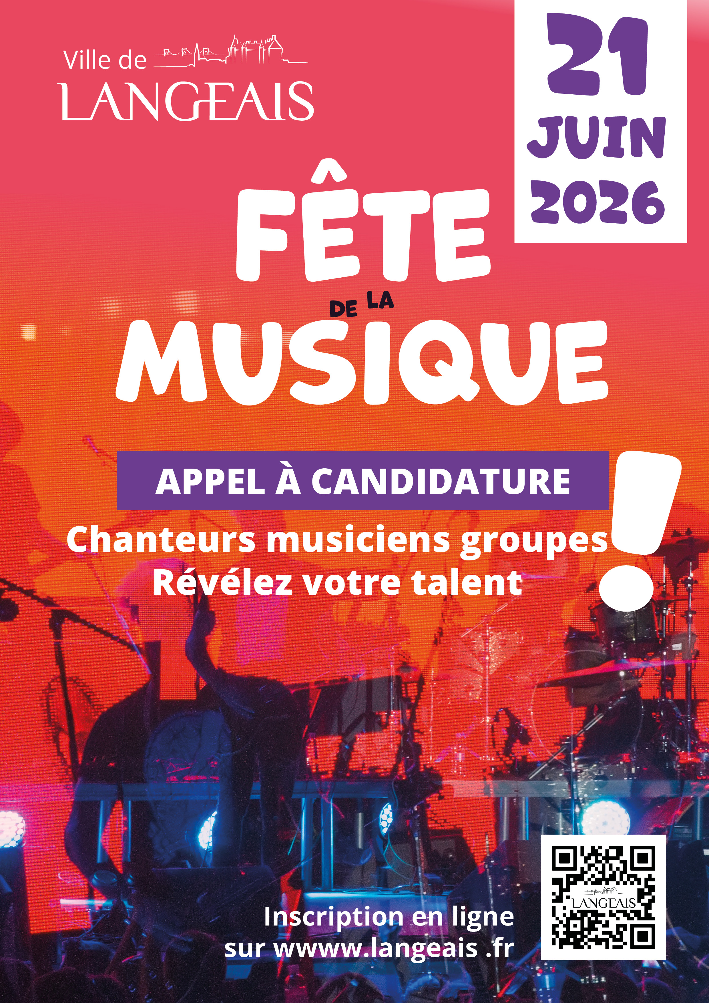 Tu es chanteur ou musicien, solo ou en groupe ? Profite d’une opportunité de pouvoir te représenter devant tous les Langeaisiens le 21 juin prochain !