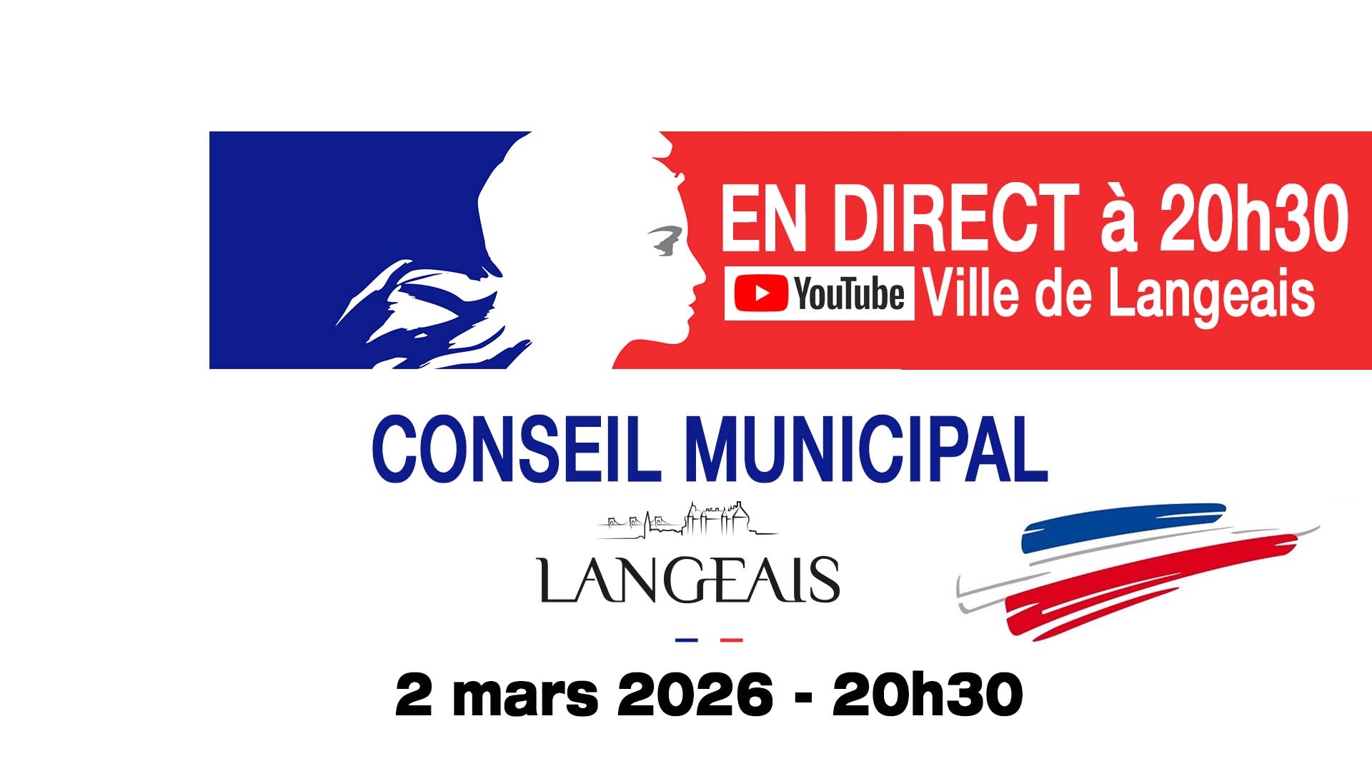 Prochaine séance du conseil municipal le 2 mars en direct à 20H30 sur la chaîne YouTube de la ville.
