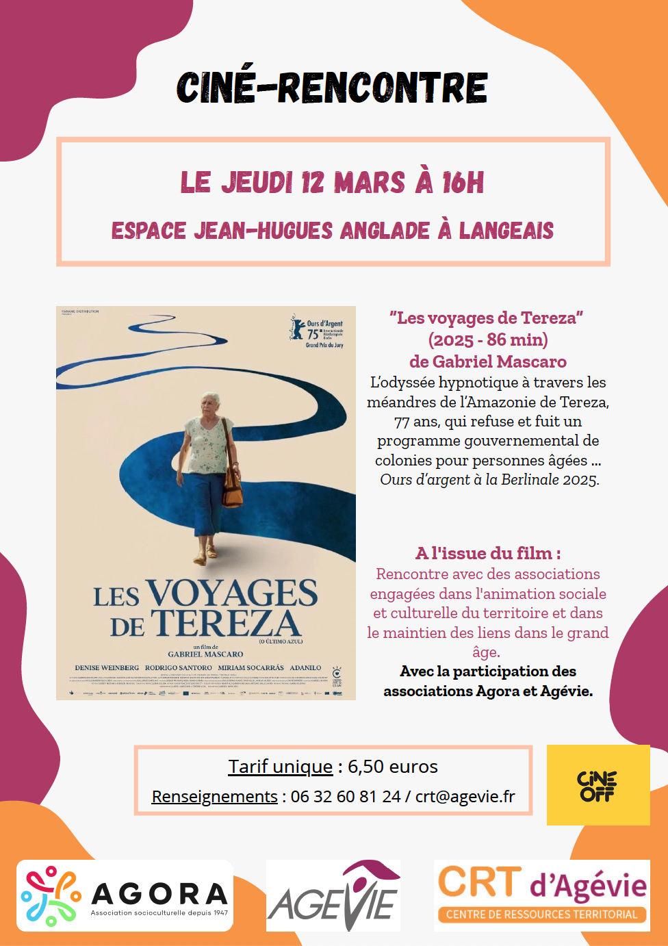 A l’issue du film, une rencontre avec des associations engagées dans l’animation sociale et culturelle du territoire et dans le maintien des liens dans le grand âge, Agora et Agévie, aura lieu.
