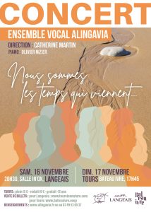 « Nous sommes les temps qui viennent » : Quel lien avons-nous avec notre planète et ses habitants, les humains et les autres qu’humains ? En tissant ensemble des chœurs des XXème et XXIème siècles et des textes littéraires, Alingavia tracera un chemin sensible de réflexion sur notre place d’humain et l’importance de nos choix à l’heure de l’urgence climatique pour la Terre. Pour ce spectacle, Alingavia retrouve ses complices la metteuse en scène Hélène Poitevin et le pianiste tourangeau Olivier Nizier. …