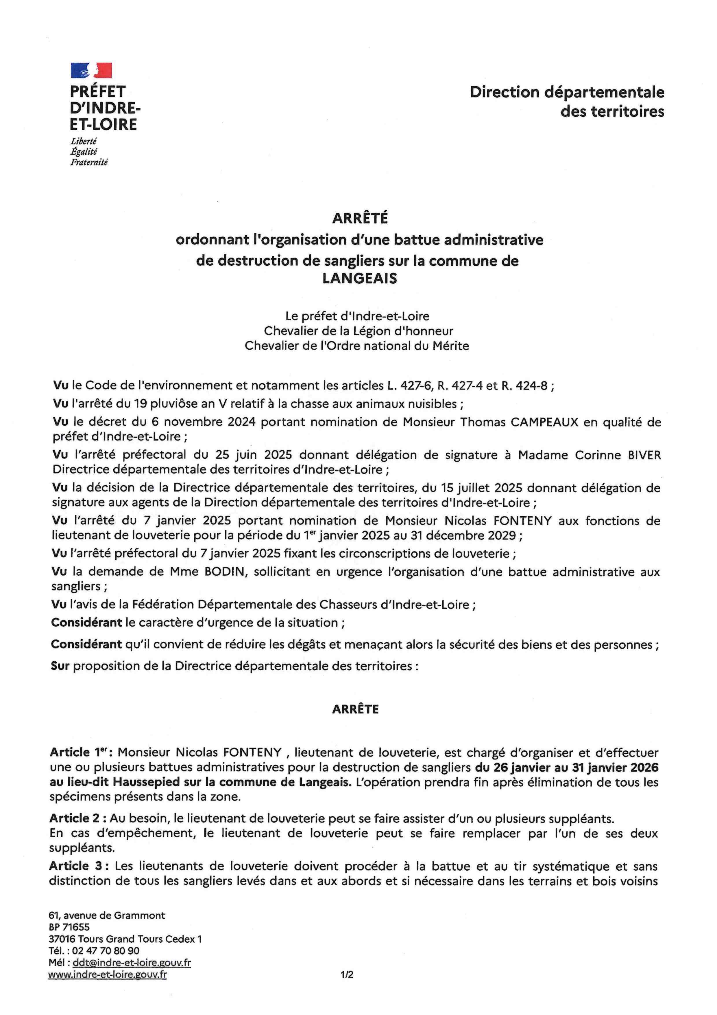 En raison d’un sanglier errant depuis quelques jours sur un terrain aux abords du château d’eau à Haussepied, un arrêté préfectoral ordonne dès le début de la semaine prochaine une battue afin de maitriser l’animal. Cette opération sera menée à bien par le lieutenant de louveterie.